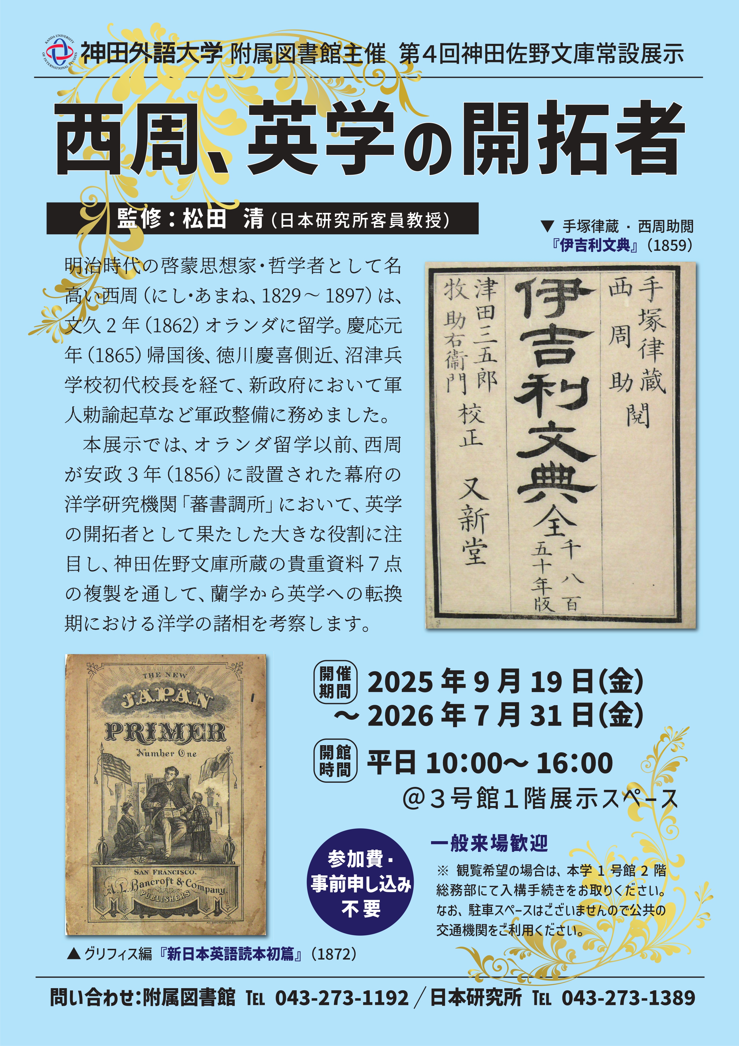 神田佐野文庫常設展示「西周、英学の開拓者」